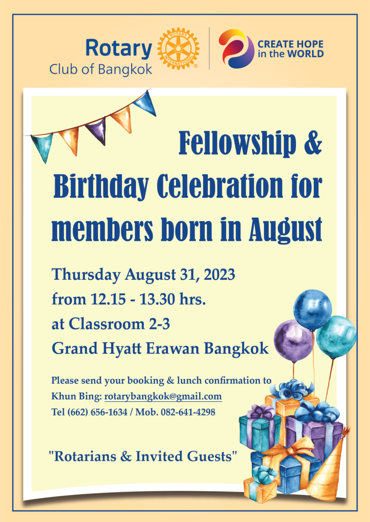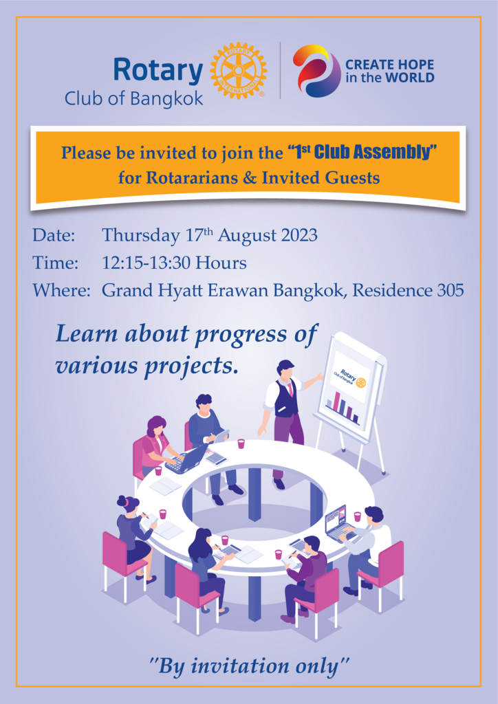 Dear RCB members, You’re invited to join RCB’s 12th Weekly Luncheon Meeting on Thurs./Sept. 21’23 as per following details. Date: Thursday 21st September 2023 Time: 12:15-13:30 hrs. Where: Grand Hyatt Erawan Bangkok, Residence 302 Topic: The Future is Now: Robotic and Drones Tech that Turns the World Speaker: Dr. Mahisorn Wongphati Menu: Appetizer: Caesar salad, slowed cooked […]